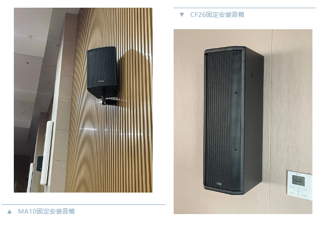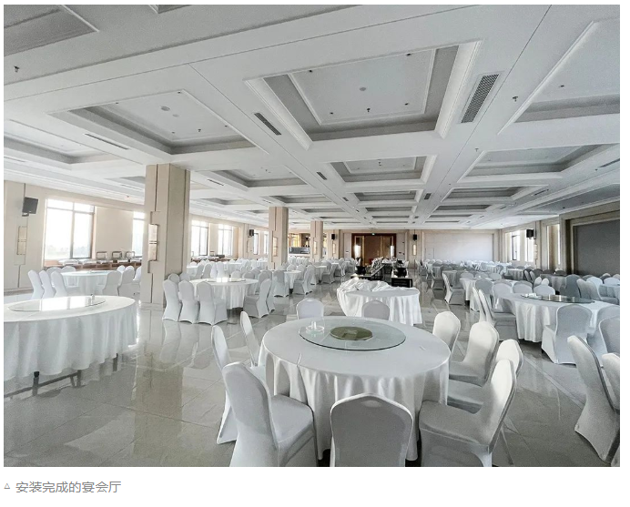 宴会厅需满足大中型集会、聚餐及庆典活动等功能需求。宴会厅同样采用了若干只M10固定安装音箱好和若干台MI系列数字功放。