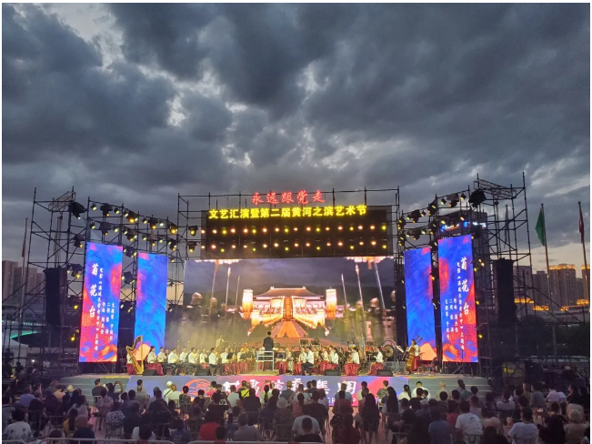 由甘肃省委宣传部、甘肃省文化和旅游厅主办,甘肃演艺集团、兰州市委宣传部、兰州市文化和旅游局承办,兰州黄河风情线大景区管委会协办的“永远跟党走”文艺汇演暨第二届黄河之滨艺术节,7月11日晚在兰州体育文化广场拉开帷幕。