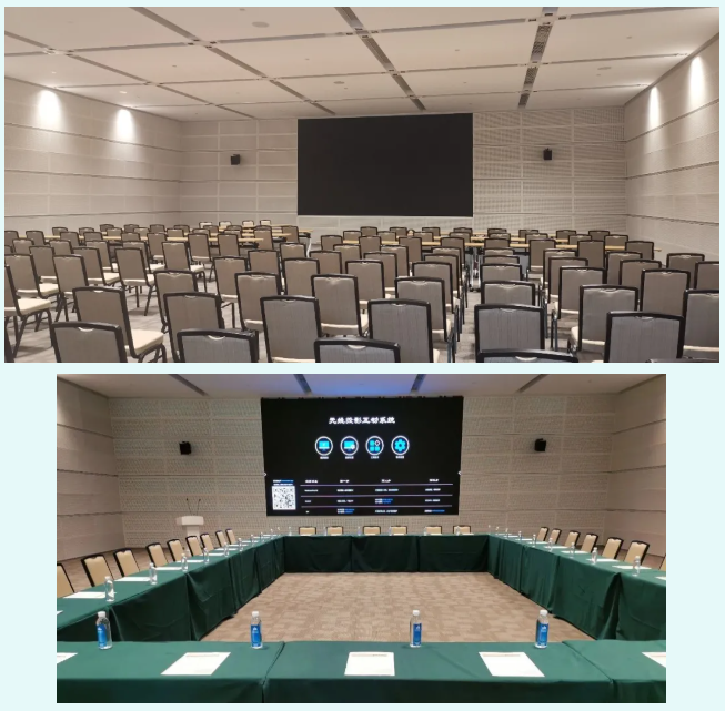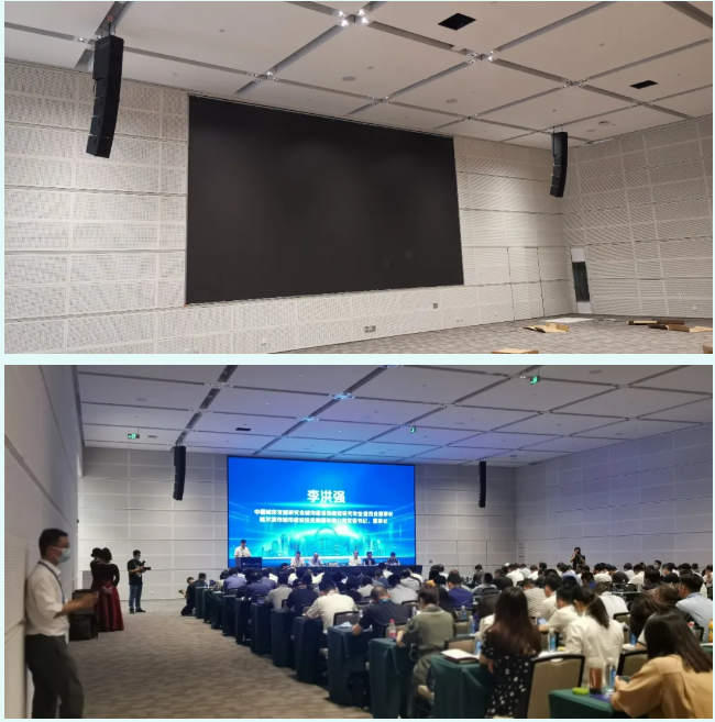 考虑到会场空间及环境,在每间650㎡的会议厅演讲台两侧都各吊挂1只M-FXA FS与4只M-FXA组成的无号角有源线阵列系统。会议厅后方采用流动安装的方式,各堆叠4只M-FXA和1只M-FXA SUB作为主扩系统。