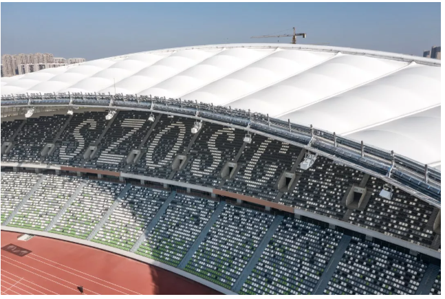 苏州奥林匹克体育中心体育场是迄今为止中国第一座马鞍形单层索膜结构屋顶设计的体育场,通常则为钢架结构,这一次的特殊结构意味着只能借助全场40个索头拉住膜。