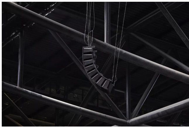 由于马道在膜上方,扬声器没有固定安装点,因此安装和检修非常困难。另外,其上下摆动的幅度达到1.5米以上,为整个扩声解决方案设计增加了很多难度。