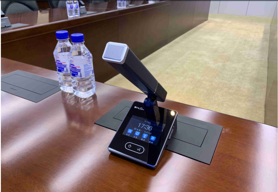 双振膜触控式会议单元HY-6320系列搭配可视化管理系统、中控系统、扩声系统等会议系统进行发言使用,有效改善中国华能深圳发电有限公司会议室的收听问题,增强整体音质效果。