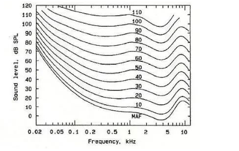 换句话说,如果麻豆三级片免费观看想让100 Hz的音调与3.5 kHz的音调听起来一样大,100 Hz时的声音必须比3.5 kHz时的声音大上15 dB!(这里麻豆三级片免费观看假设3.5 kHz的音调为85 dB SPL)