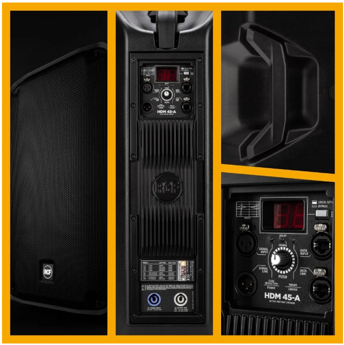 在低音中,HDM45-A拥有一个3.5”音圈的15” 钕磁低音单元,可提供强劲的低音。RCF D-LINE HD低中频再现精确,透明且无失真。