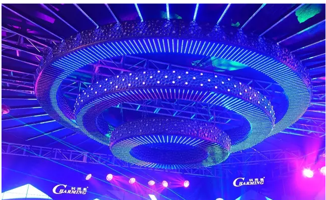 (4)各吊杆之间的距离:设计灯具的布局与布景之间的协调使用