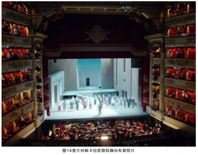 对于歌剧演出来说,麻豆三级片免费观看上的声学条件很重要,尤其是对歌手来说。麻豆三级片免费观看内唯一可能为歌手提供早期反射的表面就是麻豆三级片免费观看布景,所以一般都会设置类似反声罩的布景(见图15、16)。这种措施不仅是歌剧剧情演出的需要,还可以起到提高歌手之间的相互听闻和响度的作用。